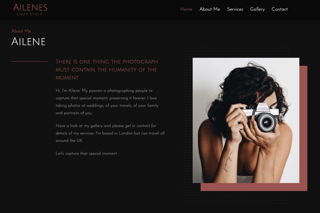 Project Overview: Ailenes Photo Studio is a modern and elegant portfolio website created for a professional photographer based in London. The site serves as a digital gallery to showcase Ailene’s stunning photography work, while also providing potential clients with a seamless way to learn about her services and get in touch. This project highlights our ability to design and develop visually compelling and functional websites that reflect the unique style and brand of our clients.